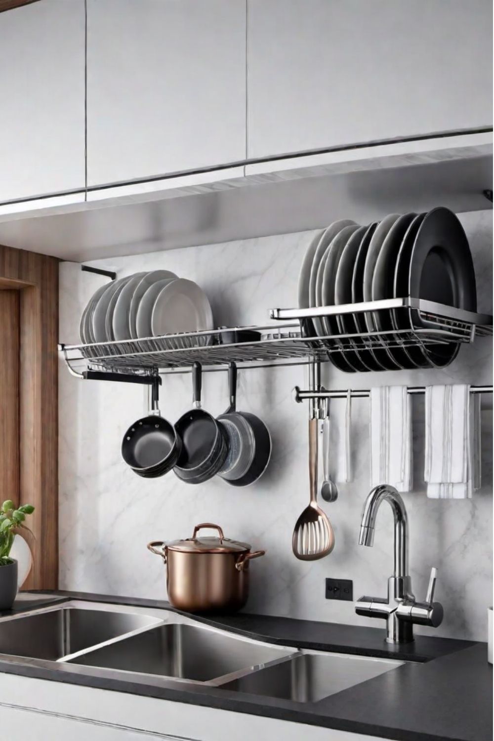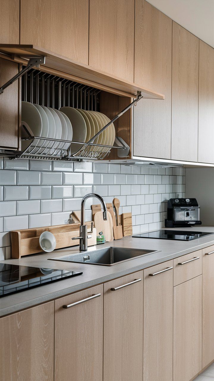 6. Rak Piring Wastafel dengan Sistem Bukaan Lift-Up