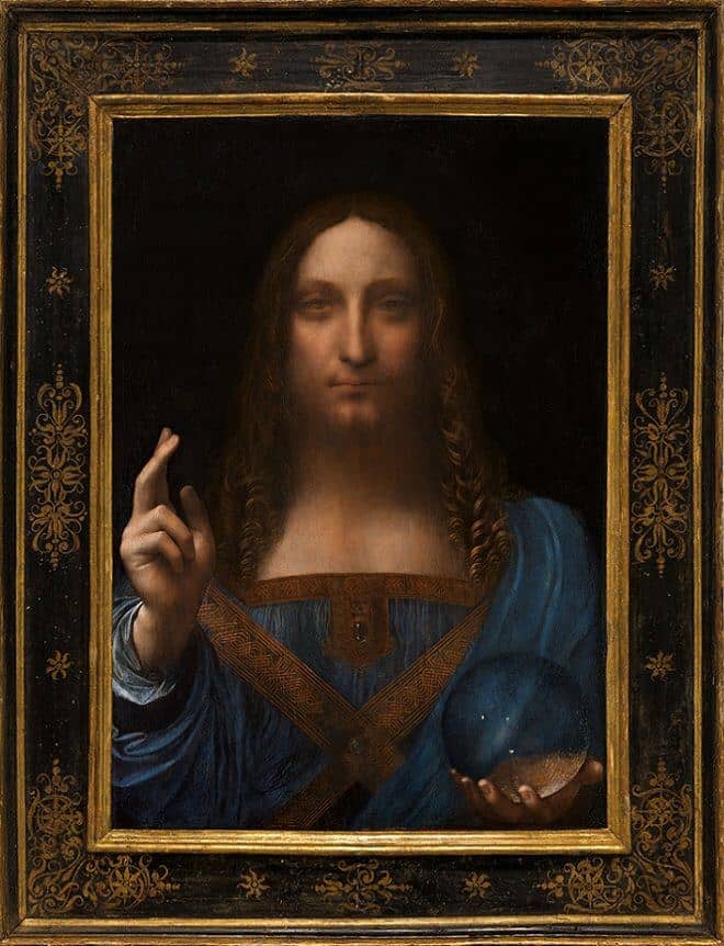 Lukisan Leonardo da Vinci yang paling populer berikutnya adalah “Salvator Mundi” yang memiliki makna kuat terkait keagamaan Kristen dan konsep keselamatan ilahi. Dalam lukisan ini, Leonardo menampilkan Yesus Kristus menghadap langsung ke arah depan, dengan tangan kiri memegang bola transparan, sementara tangan kanan diangkat seperti memberikan gestur pemberkatan.