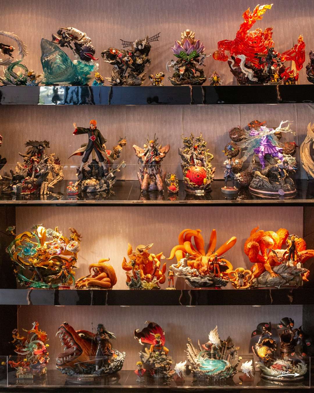 Action figure dari karakter game, film, atau anime favorit mampu memperkuat identitas ruang. Penempatan action figure pada rak khusus dengan pencahayaan aksen akan membuat koleksi terlihat lebih eksklusif, sekaligus menambah nilai visual tanpa membuat ruangan terasa penuh.