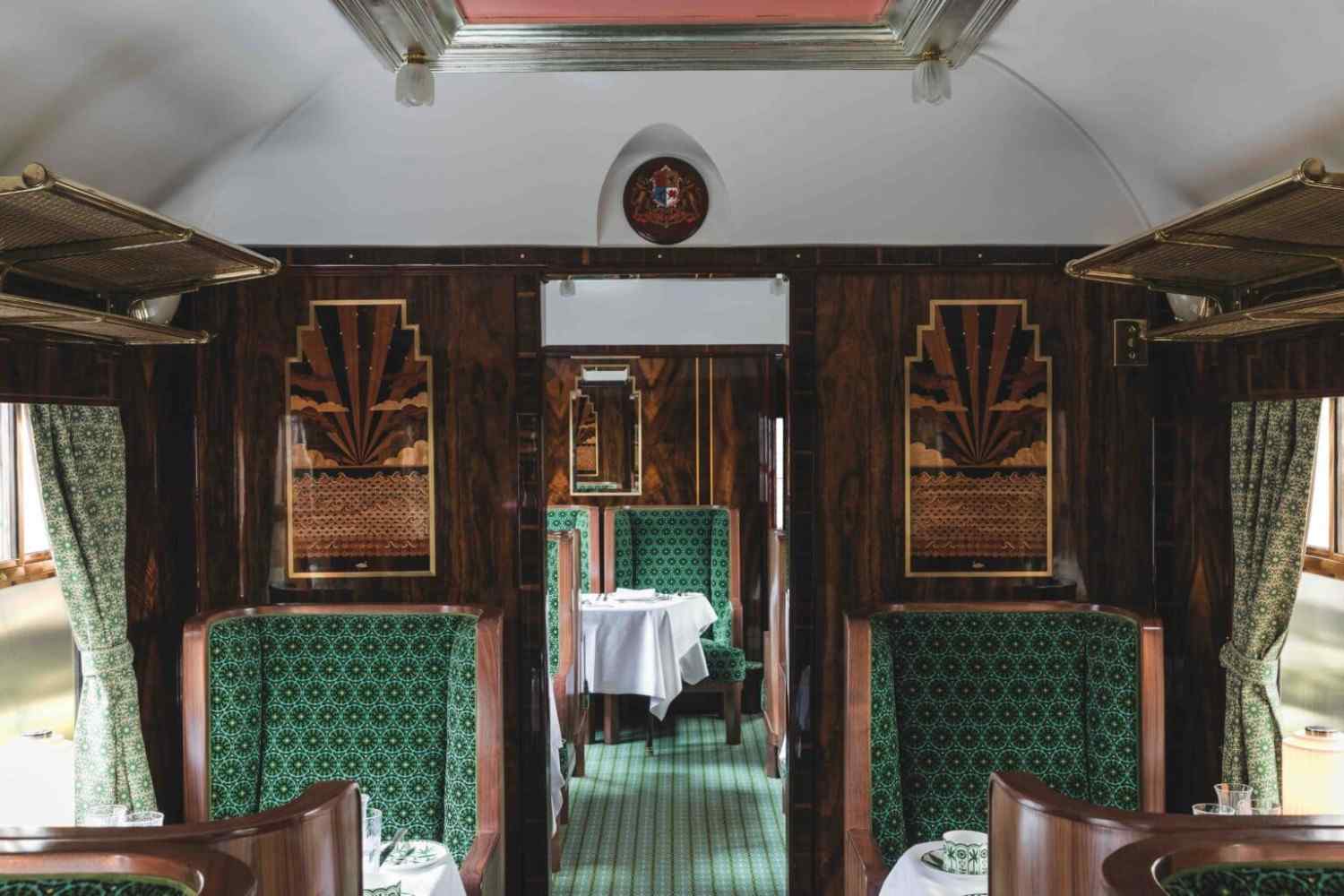 Lapisan desain interior yang romantisme pada gerbong VIP British Pullman, terinspirasi oleh lanskap Inggris, flora dan fauna. Pengrajin marquetry yang sudah bermitra lama dengan Belmond, Dunn & Son turut membantu mewujudkan dunia ini beserta dengan desainer furnitur, Bill Cleyndert. Rangkaian material, tekstur dan motif floral fauna disusun dengan presisi yang terkoordinasi, menjadi pusat perhatian pengunjung. Ruang Eksklusif dalam kereta British Pullman dipisahkan oleh tirai teater yang dapat terbuka tutup untuk membuka pemandangan seperti lanskap mimpi yang terukir di interior.