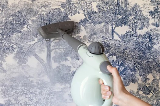 Menggunakan alat uap (steam cleaner) dapat menjadi cara melepas wallpaper dinding yang efektif, terutama untuk wallpaper dengan daya rekat kuat atau yang sudah lama menempel. Uap panas bekerja dengan cara melunakkan lapisan perekat wallpaper, sehingga lebih mudah dilepaskan tanpa merusak permukaan dinding.