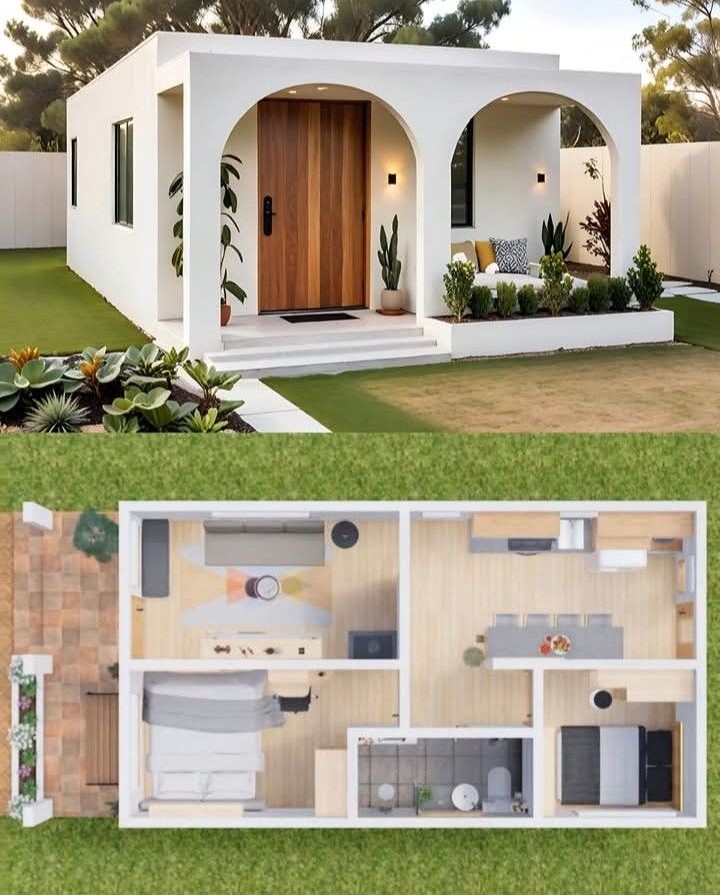 Rumah 1 lantai sering menjadi pilihan yang paling praktis untuk lahan kecil. Tata ruangnya sederhana dan memudahkan mobilitas penghuni karena tidak perlu menggunakan tangga. Biasanya rumah satu lantai di lahan ini terdiri dari ruang tamu di bagian depan, dua kamar tidur di tengah atau belakang, dapur kecil, serta satu kamar mandi. Selain itu, biaya pembangunan rumah satu lantai juga cenderung lebih hemat.