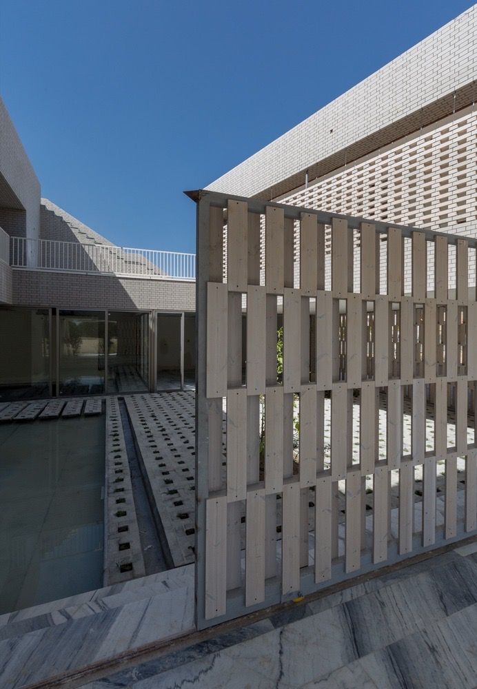 Motif geometris seperti garis diagonal atau bentuk kotak mampu memberikan sentuhan modern pada fasad rumah.