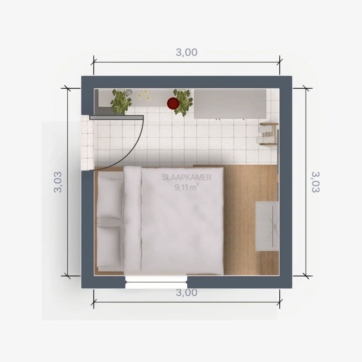 4. Kamar 3x3 Aesthetic dengan Tanaman Hias