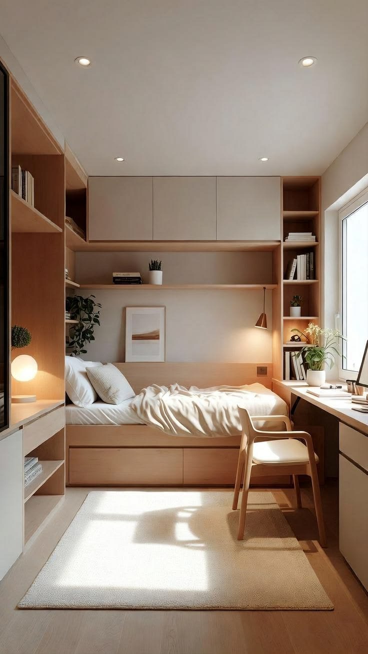 Dalam desain interior modern, kamar kecil justru sering menjadi ruang yang paling kreatif untuk ditata. Pemilihan warna, furnitur, serta dekorasi yang tepat dapat membuat kamar terlihat lebih rapi dan nyaman untuk beristirahat.