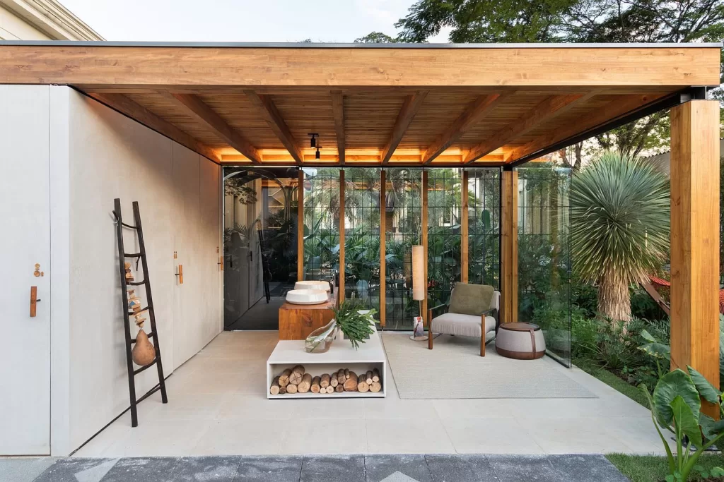 Kanopi kayu memberikan kesan hangat dan natural pada rumah minimalis. Biasanya digunakan sebagai aksen pada teras depan atau area taman. Agar tetap awet di iklim tropis, kayu perlu diberi lapisan pelindung khusus. Model ini banyak dipadukan dengan beton, batu alam, atau cat dinding warna netral.