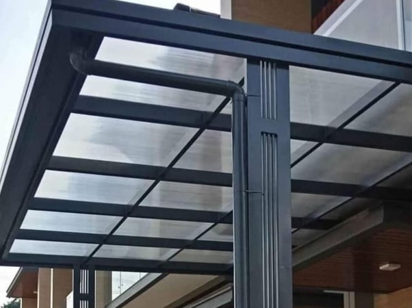 Kanopi dengan atap alderon cukup sering digunakan karena mampu meredam panas dan suara hujan. Secara visual, tampilannya tetap minimalis meski tidak transparan. Cocok untuk kamu yang mengutamakan kenyamanan area bawah kanopi, seperti carport atau teras depan rumah.