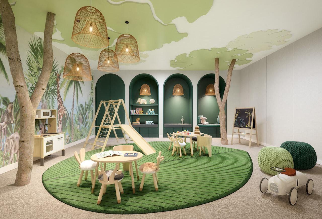 Ruang bermain bernuansa alam cocok untuk aktivitas yang membutuhkan konsentrasi ringan, seperti membaca, menyusun balok, atau bermain secara mandiri.