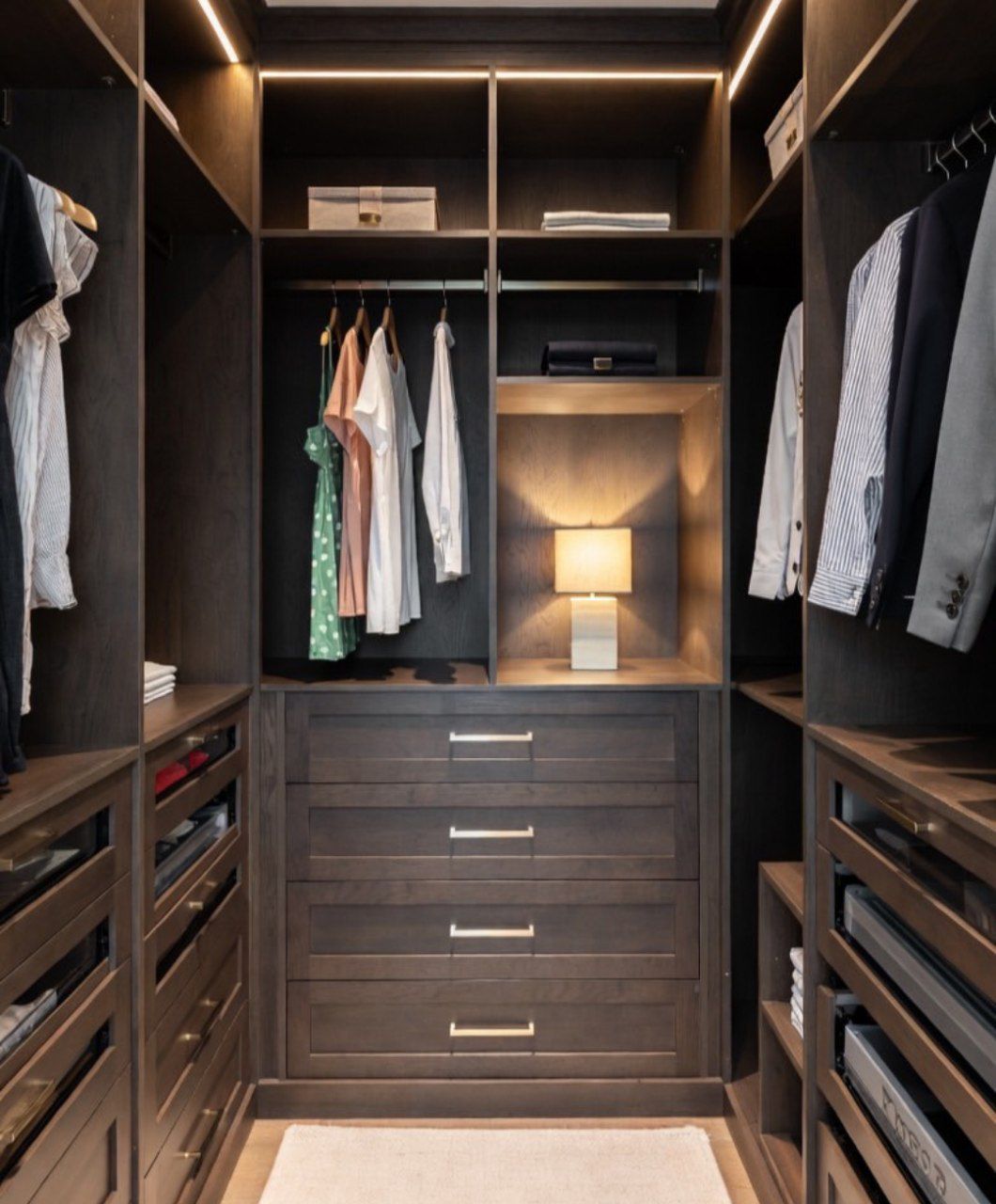 Pencahayaan yang hanya mengandalkan lampu neon atau lampu kuning redup pada bagian atas lemari cenderung memberikan iluminasi yang tidak merata. Cahaya seperti ini membuat Anda kesulitan membedakan warna atau memilih pakaian dengan cepat.