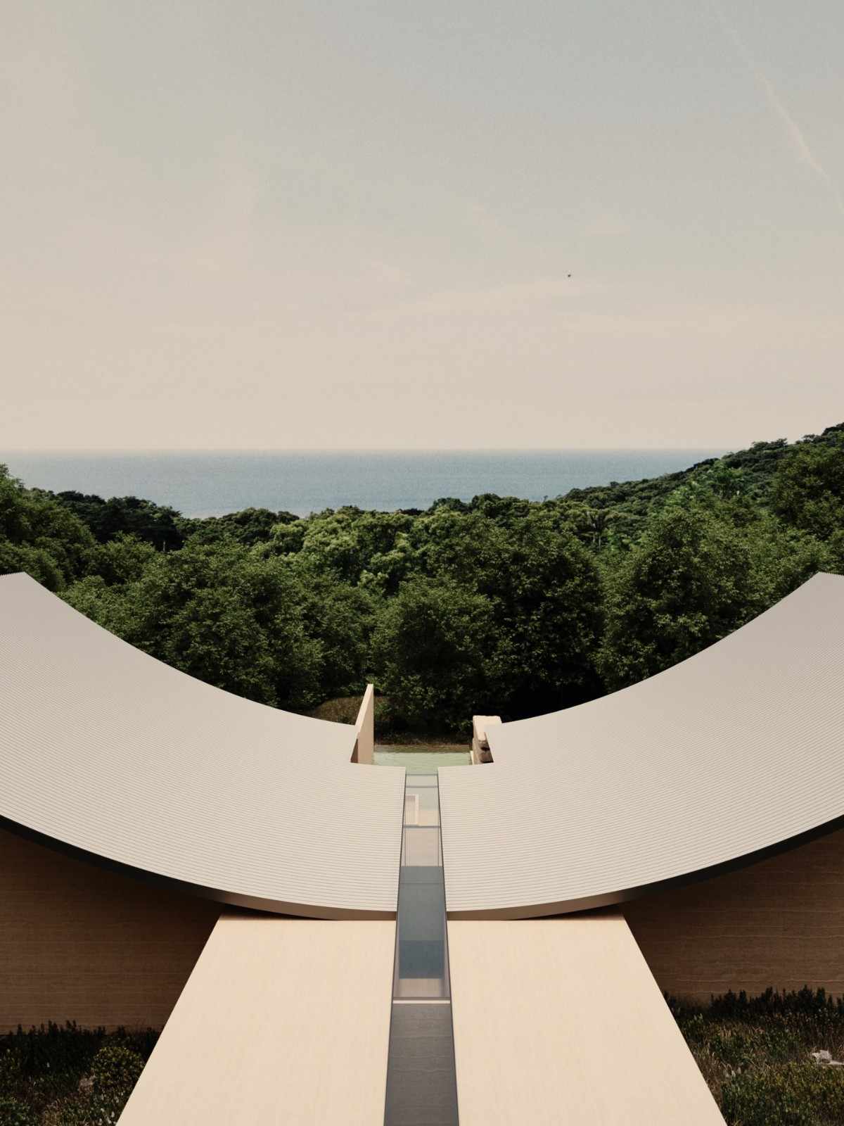 Secara keseluruhan, arsitektur vila ini menekankan kesinambungan antara bangunan, kontur tanah, dan vegetasi di sekitarnya. Atap lengkungnya bertumpu ringan pada volume linear di bawahnya, sementara bentuknya yang mengalir ditopang oleh dasar horizontal yang kuat. Proyek ini pada akhirnya menghadirkan gagasan hunian yang menyatu dengan topografi alam, bukan sekadar berdiri di atasnya.