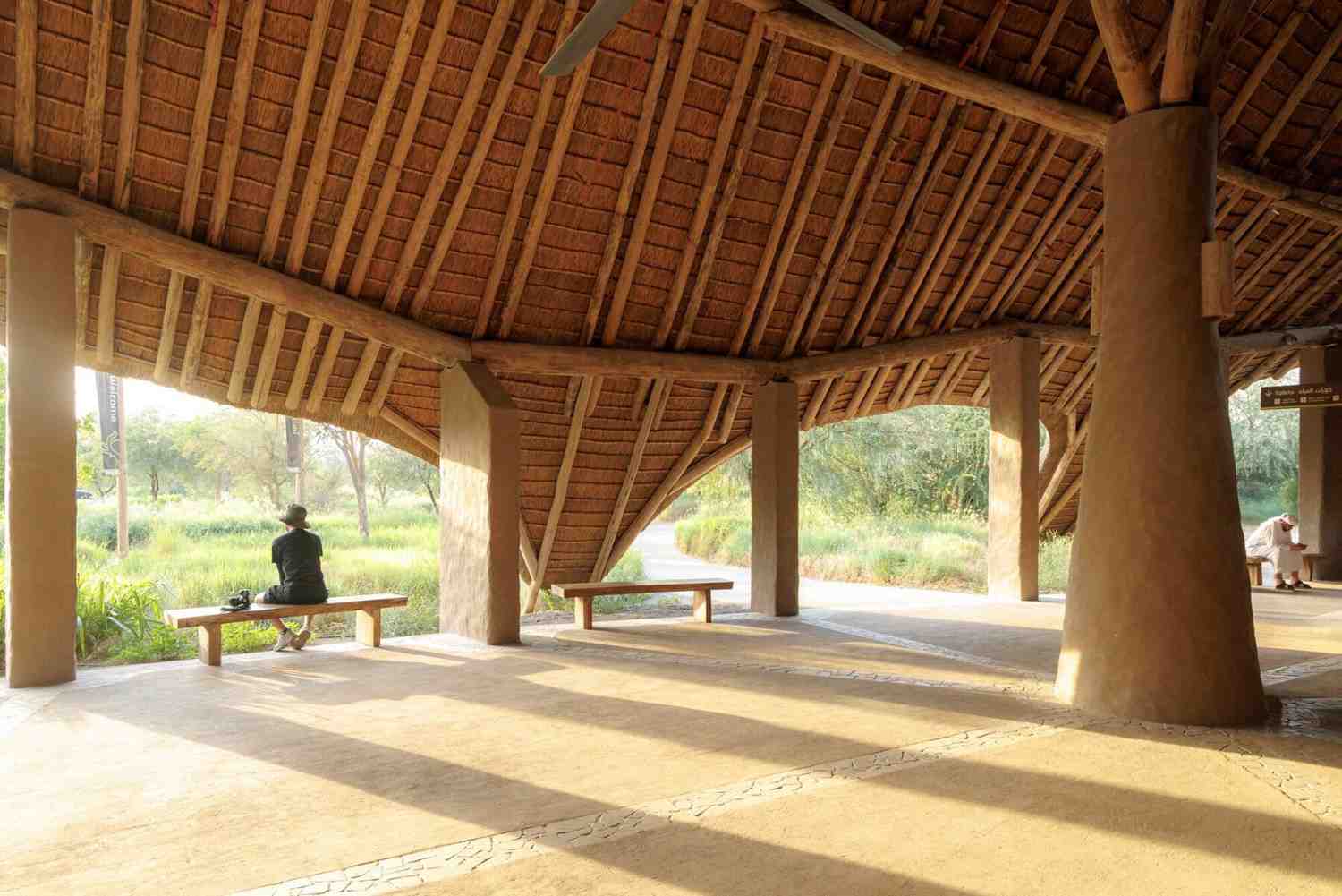 Serangkaian paviliun beratap ilalang membentuk pintu masuk baru bagi Sharjah Bridi Park. Pada Sharjah Bridi Park, struktur kayu menjadi dasar utama susunan bangunan. Kolom dan balok disusun untuk menciptakan interior terbuka agar udara dan cahaya dapat bergerak bebas, sementara struktur tersebut sengaja dibiarkan terlihat dari dalam sehingga karakter konstruksinya menjadi bagian dari pengalaman ruang.