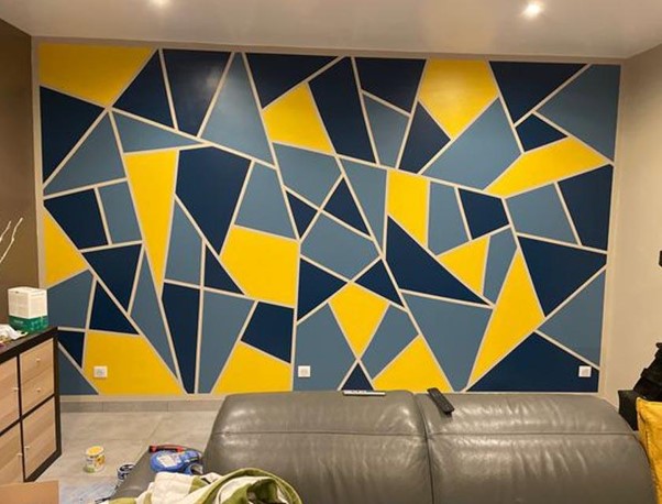 Pola segitiga menawarkan tampilan yang lebih kompleks dan artistik, sehingga sering digunakan untuk menciptakan focal point dalam ruangan. Dengan pengaturan warna yang tepat, motif ini dapat memberikan kesan kontemporer yang kuat tanpa terlihat berlebihan. Inspirasi ini sangat ideal untuk Anda yang ingin menghadirkan sentuhan kreatif dalam interior rumah.