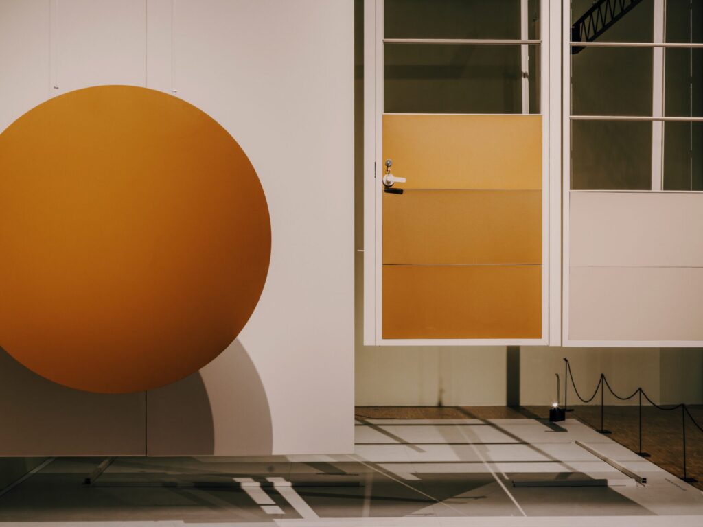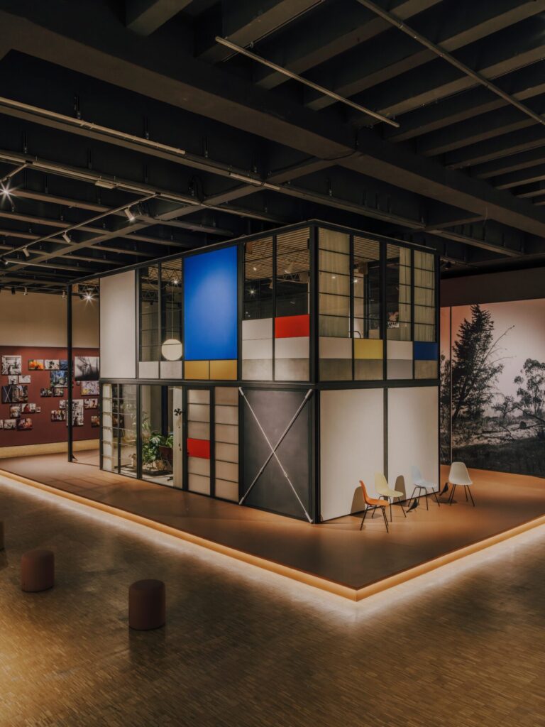 Di pusat ruang, dua struktur paviliun dihadirkan agar pengunjung dapat merasakan langsung kualitas ruang dan material khas Eames.